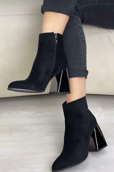 2) Ботильоны на геометрическом каблуке: