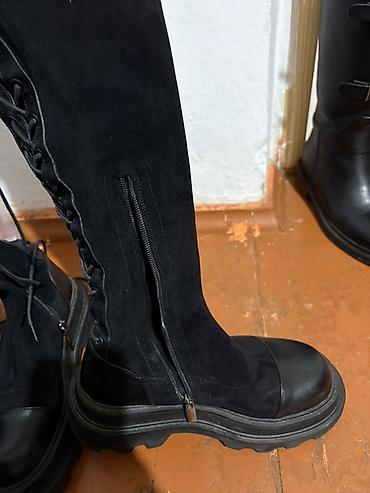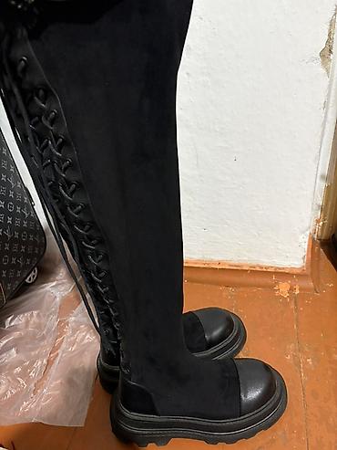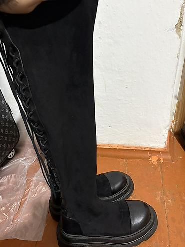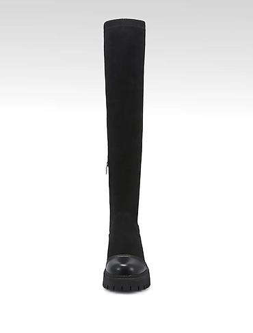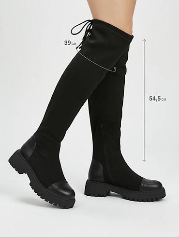 Высокие женские ботфорты на массивной подошве - Цвет: черный -