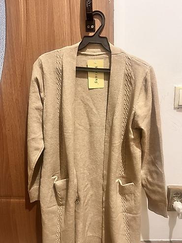 Бежевый женский кардиган без застежки.