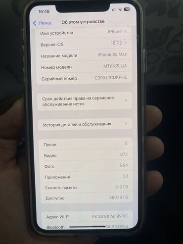 IPhone XS Max, 512 ГБ - Модель: iPhone XS Max (на экране «Об этом устройстве» указано: iPhone Xs Max, номер модели MT582AH/A) - Память: 512 ГБ (доступно ~483,98 ГБ) - iOS: 18.5 - Аккумулятор: макс...