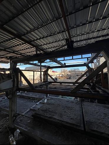 - Металлический навес на стальных стойках, рабочие посты и стеллажи.