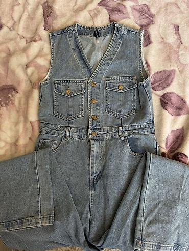 Джинсы - Модель 1: джинсы на резинке с утяжкой-шнурком, пять карманов, классический серо-черный деним. Размер 32–34 (на 48–50). Цена: 250 сом (указано на фото). - Модель 2: джинсы на молнии и пуг...