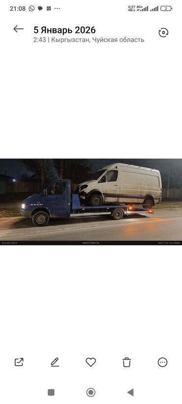 Эвакуатор/автопомощь на дороге Услуги: - Эвакуация автомобилей после поломки или ДТП. - Транспортировка машин по городу и междугородняя. - Погрузка/выгрузка низких авто. Эвакуатор Бишкек Эвакуатор ...