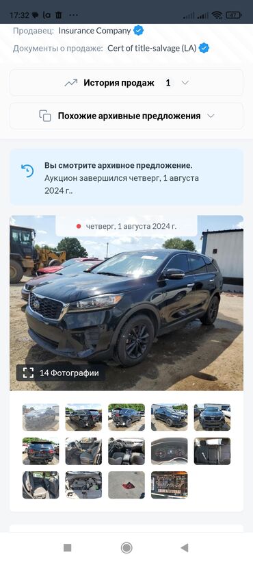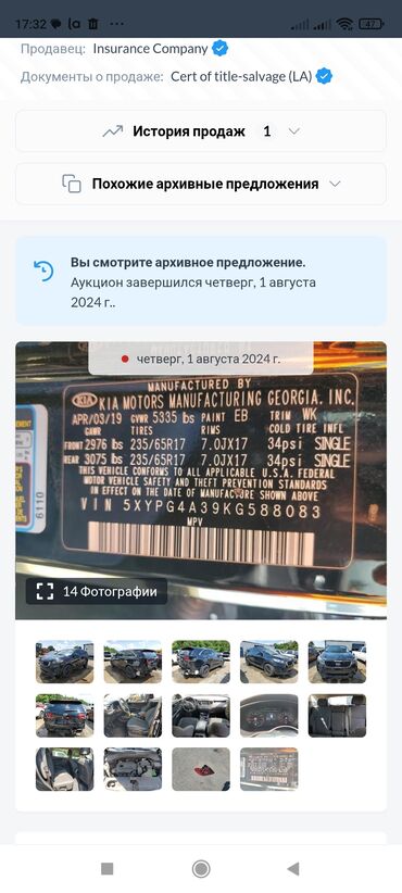 - В галерее имеется история продаж (архивное предложение от четверга, 1 августа 2024 г., продавец Insurance Company).