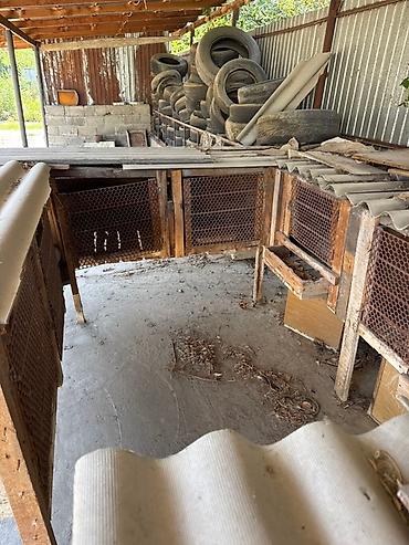 Универсальный стеллаж-витрина из дерева и металла. Конструкция состоит из длинного деревянного каркаса коричневого цвета с белой окантовкой, разделенного на множество секций для удобного размещения...