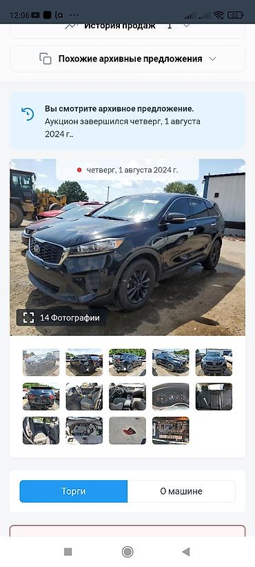 - На последнем скриншоте — карточка лота с аукциона от 1 августа 2024 г. с набором 14 фотографий, где видны внешний вид, салон, панель приборов, багажный отсек и подкапотное пространство.