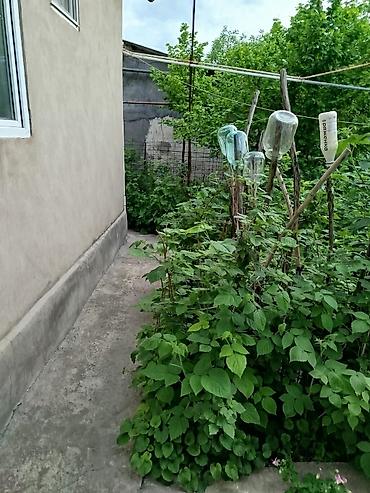 - Огороженная территория с зелеными насаждениями и плодово-ягодными кустами, опоры для растений.