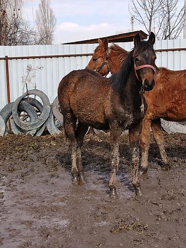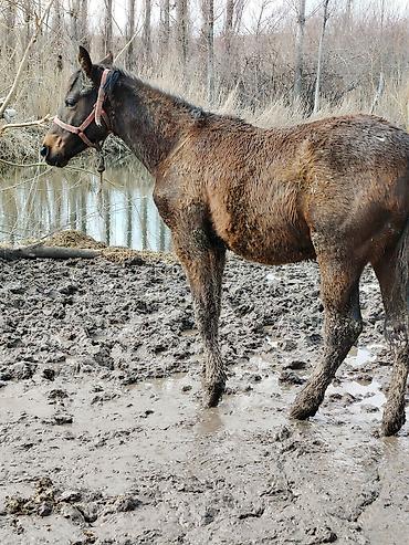 Срочно срочно жашы 3 жаш эркек малга улака универсал басыгы бар женил оозу жумшак Кеми бар ат ысык атада Лошадь под верховую езду - Масть: гнедая, с белой отметиной на морде и белой «чулочной» отм...