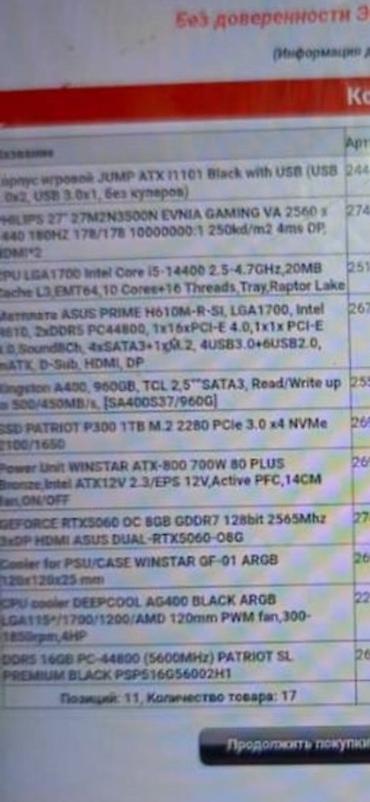 Монитор + процессор + клавиатура + 2 мыщки и еще наушники всего за 35000 сомов Игровой ПК + монитор MSI Характеристики системного блока: - Материнская плата: Asus H110M-K - Процессор: Intel Core ...