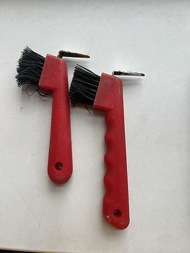- 2 щёточки для копыт с жёсткой щетиной и металлическим крючком — очистка стрелки и канавок.
