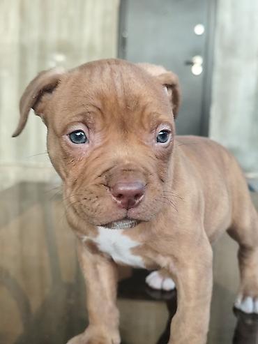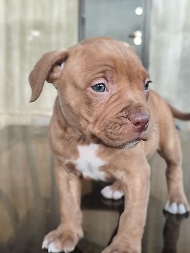 Продаются щенки (Американский красноносый питбуль)2 кобеля, возраст — 2 месяца.Окрас — рыжий/шоколадный/ с белым пятном на груди, зеленые/голубоватые глаза. Крепкий костяк, короткая блестящая шерсть, широкая мордочка с выраженными складками, компактные уши, мощные лапы. Без родословной, без прививок. Родители чистокровные красноносые питбули. Ухоженные домашние щенки.
