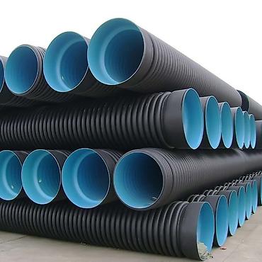 Двустенные гофрированные трубы большого диаметра (черные с синим внутренним слоем). Назначение: - наружная канализация и ливневая сеть; - дренажные системы; - прокладка кабельных линий в земле; - ...