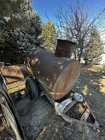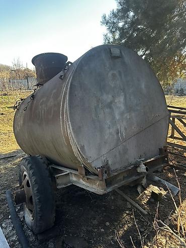 - Металлическая цилиндрическая емкость на двухколёсном прицепном шасси.