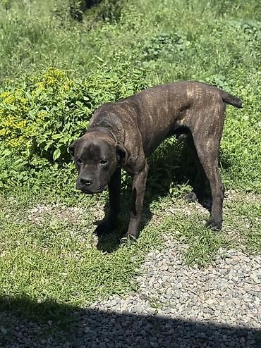 Продается собака кане корсо, тигровый окрас (темно-коричневый с выраженными полосами). 1 год.