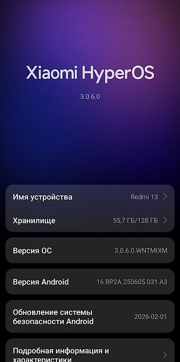 Смартфон Xiaomi Redmi 13, 256 ГБ все работает, ошибки нет. В комплекте коробка, чехол, стекло и гарантия - ОС: Xiaomi HyperOS 1.0.7.0 на базе Android 14 - Память: 256 ГБ (на экране настрое...