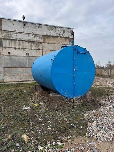 Стальная горизонтальная ёмкость 25Т (резервуар) цилиндрической формы, окрашена в синий цвет. Предназначена для хранения жидкостей: воды, дизтоплива, масел, технических растворов.