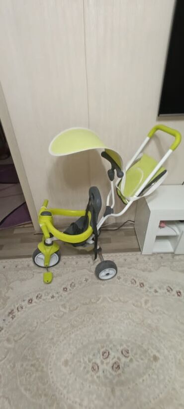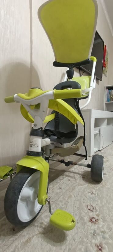 Детский велосипед. из минусов нет подставки для ножек и нужно постирать(весь в пыли т.к. долго стоял без дела)