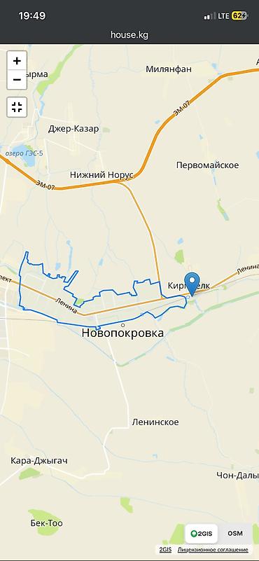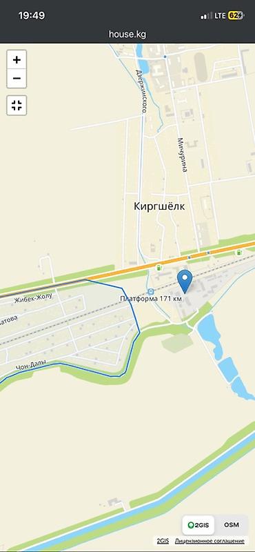 Земельный участок на карте Киргшелка (Чуйская область), ориентир — пост ГАИ рядом с улицами Дзержинского и Мичурина, массивы «Жибек-Жолу» и «Чон-Дөбө».