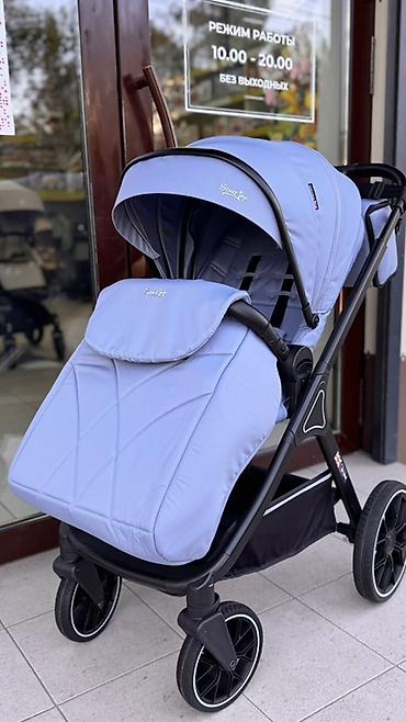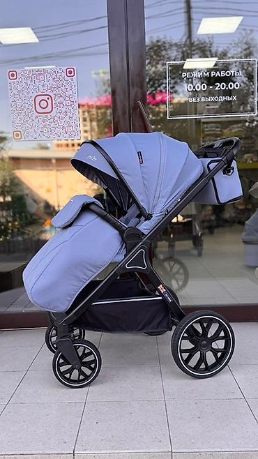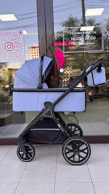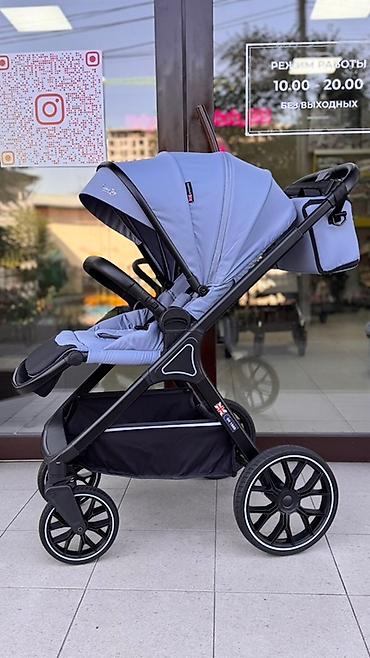 Цвет: светло-голубой с чёрной рамой и чёрными колёсами. Подходит с рождения и на весь период прогулок. Дизайн в английском стиле (британская эмблема на раме).