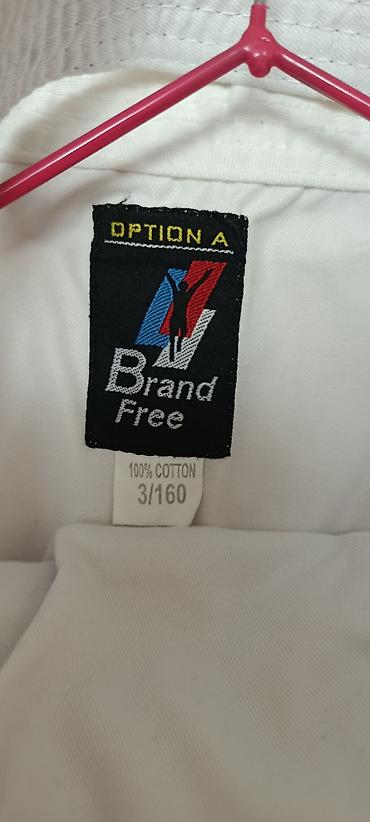 Кимоно (добок) для тхэквондо Brand Free OPTION A. - Цвет: белый - Комплектация: куртка, штаны, пояс - Материал по ярлыку: 65% полиэстер, 35% хлопок - Размеры по ярлыкам: 3/160 и 4/170 (есть два до...