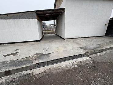 - Просторный двор с бетонным покрытием и навесом между двумя строениями — удобно для парковки нескольких автомобилей, организации мастерской или зоны хранения.