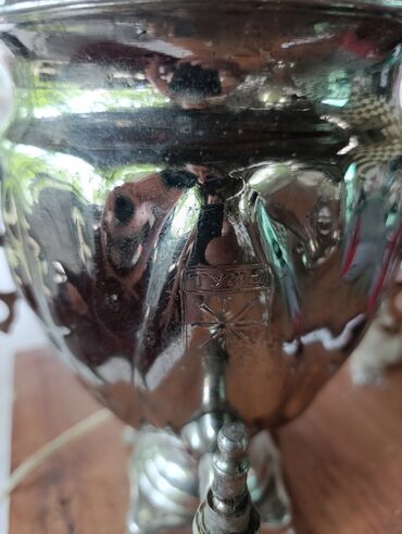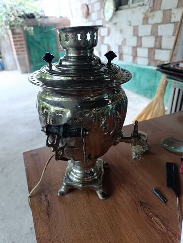 Электрический самовар из нержавеющей/никелированной стали с классической формой «ваза». В не рабочем состоянии, нужно заменить спираль. Характеристики: - Питание от сети, шнур в тканевой оплётке с...