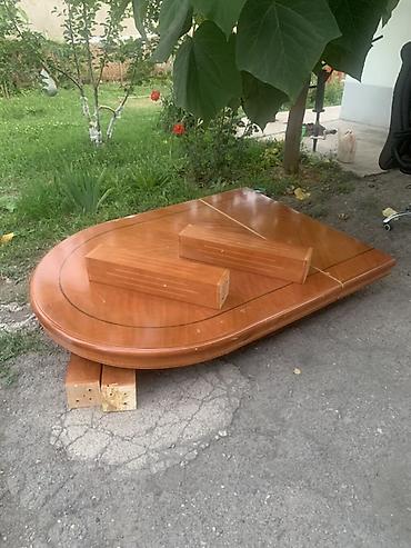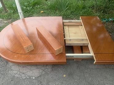 - Стол овальной формы с раздвижным механизмом по направляющим. Центральная вставка хранится внутри стола. Столешница с фигурной кромкой и декоративной инкрустацией по периметру. В комплекте массивные деревянные опоры (ножки крепятся болтами). Материал — шпон/массив, теплый медово-коричневый тон.