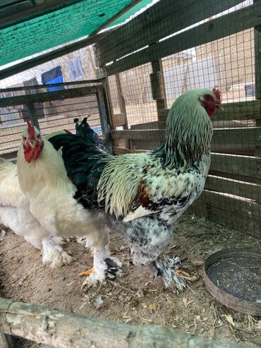 Петухи крупной мясо‑яичной породы с оперёнными ногами (тип Брама/кохинхин).