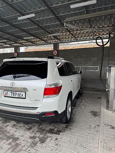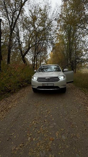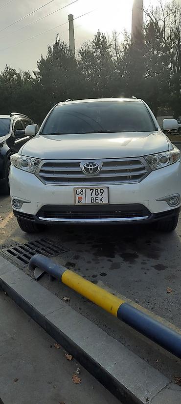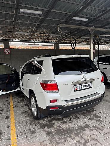 Toyota Highlander — полноразмерный кроссовер, белый цвет кузова. Киргизские номера KG.