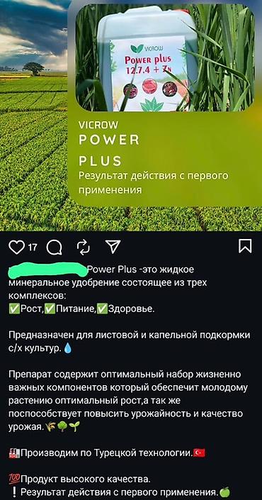 Цена за 1 литр 300 Сом Power Plus 12-7-4 + Zn — жидкое минеральное удобрение для сельскохозяйственных культур.