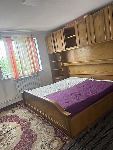 - Спальня с деревянной двуспальной кроватью, большим стеновым шкафом со стеллажами и антресолями.