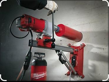 Используется профессиональное оборудование Hilti/Milwaukee на направляющих стойках с алмазными коронками строительной серии.