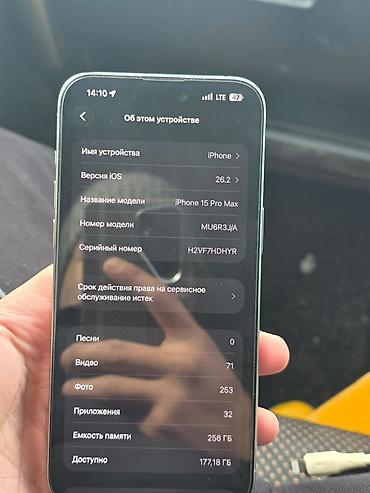 Iphone 15 pro max. В идеальном состоянии Обьем памяти 256гб Аккумулятор 85%. Заряда на сутки хватает смело. Абсолютно без нареканий, все родное, ничего не меняли, ни сколов, ни царапин. Комплект:...