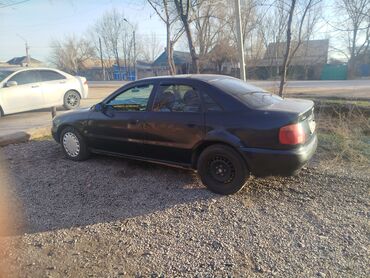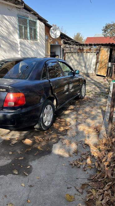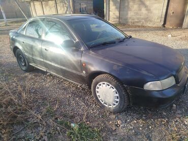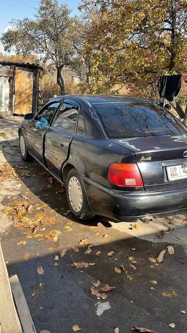 Audi A4 седан, серебристый цвет, кузов B5 (дорестайлинг/рестайлинг с прозрачными фарами). Киргизские номера. Основные характеристики: - Кузов: 4‑дверный седан, серебристый металлик - Привод: перед...