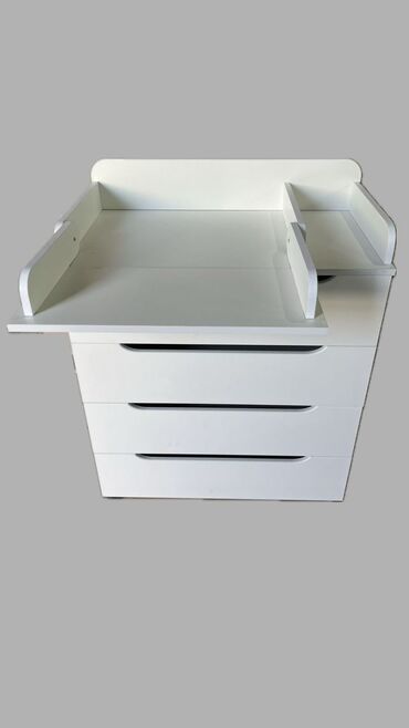 - Широкая пеленальная поверхность с бортиками по периметру для безопасности; дополнительная боковая полка-разделитель для средств гигиены и мелочей.