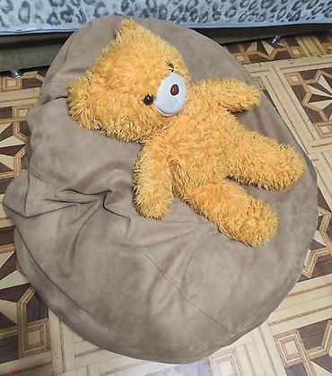 - Кресло-мешок: большая круглая модель, мягкий наполнитель подстраивается под тело. Обивка — бархатистая микрофибра/замша бежево-серого цвета, приятная на ощупь, легко вписывается в интерьер спальни, детской или гостиной. Подходит для чтения, игр, отдыха у ТВ.