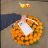 Букет из мандаринов в дизайнерской упаковке: - Состав: свежие мини‑мандаринки с листочками (плотная укладка), пищевая пленка, многослойная матовая флористическая бумага нежно‑розового оттенка, ат...