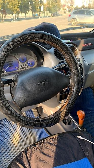 Daewoo Matiz, 5‑дверный хэтчбек, голубой цвет. Ключевые особенности: - Компактные габариты, удобен для города и парковок. - Экономичный бензиновый двигатель, механическая коробка передач. - 4 мест...