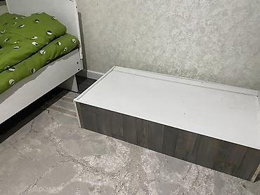 - В комплекте виден ящик/короб под кроватью для хранения (выкатной модуль отдельно стоящий на роликах/полозьях по фото) — удобно для постельного белья и игрушек.