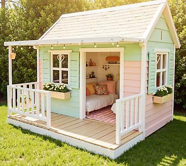 - Назначение: игровая зона во дворе/саду, тихое место для чтения и творчества, мини-гостевая для детских посиделок.