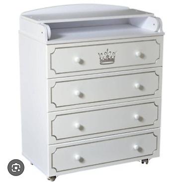 - Цвет: белый, декоративные золотистые линии и эмблема короны на верхнем ящике.