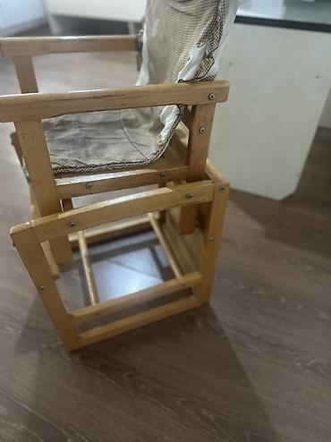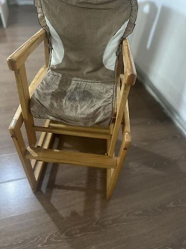 Детский трансформируемый стульчик для кормления из натурального дерева.