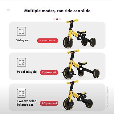 - Формат 2-в-1: можно использовать как беговел с двумя задними колесами для устойчивости или как баланс-байк с одним задним колесом (режимы переключаются механизмом на оси).
