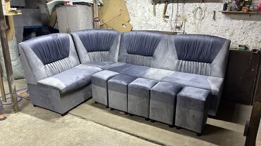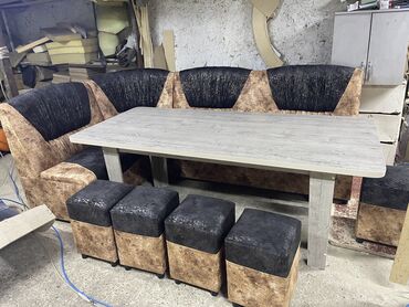 Мебель Бишкек кухонный уголок размер 2.55 на 1.65 стол 2 на 90 см 6 штук пуфик, каркас ламинат,поролон плотность 25/45 . Наличие есть заказ принимаем любой размер.