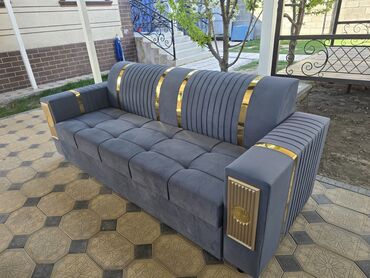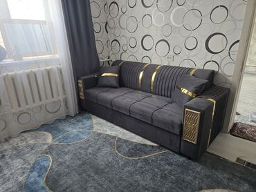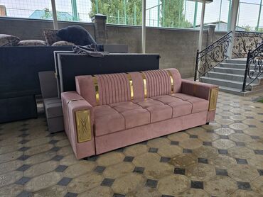 Мебель Бишкек диван кровать размер 2.20 рабочих мест 1.90 спальных мест 1.50 три штук подушки поролон плотность 25/45 толщина 8 см.