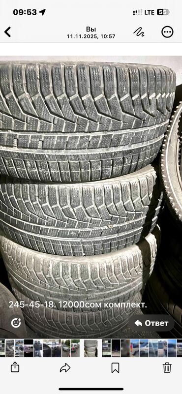 Литой диск с зимней шиной в сборе. Характеристики: - Диаметр диска: ориентировочно R17(10‑спицевый серебристый литой). - Посадочное отверстие: 5 болтов (разболтовка 5х—, центральное отверстие под ...