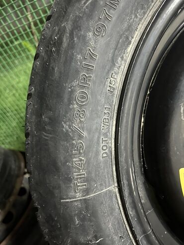 1) Запасное “докатка” колесо в сборе в отличном состоянии. Шина: Dunlop Space Miser, бескамерная (Tubeless) Размер: T105/70D16 2) Запасное колесо в сборе, RIDGESTONE Размер165/70/13