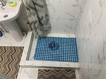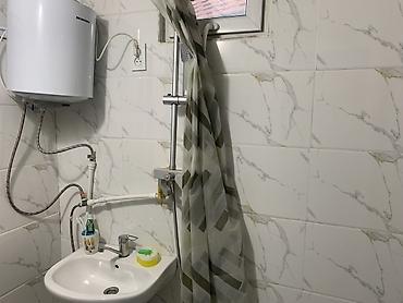 - Ванная комната облицована керамической плиткой, установлены душевая стойка со шторкой, умывальник, водонагреватель (бойлер), вытяжное/форточное окно.