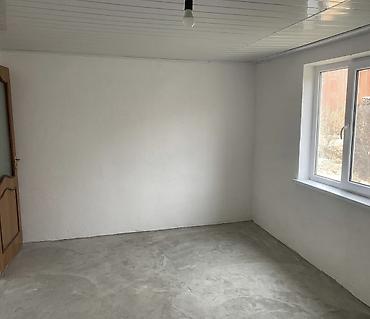 - Полы в комнате подготовлены стяжкой, потолок отделан ПВХ-панелями, установлено окно ПВХ.