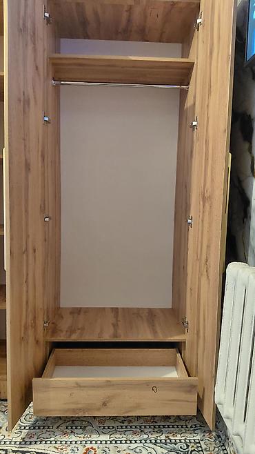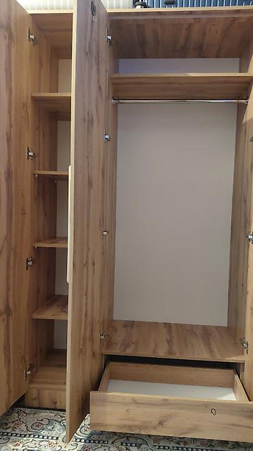 - Отделение для одежды на вешалках: хромированная штанга, верхняя полка для коробок/головных уборов, нижняя полка.